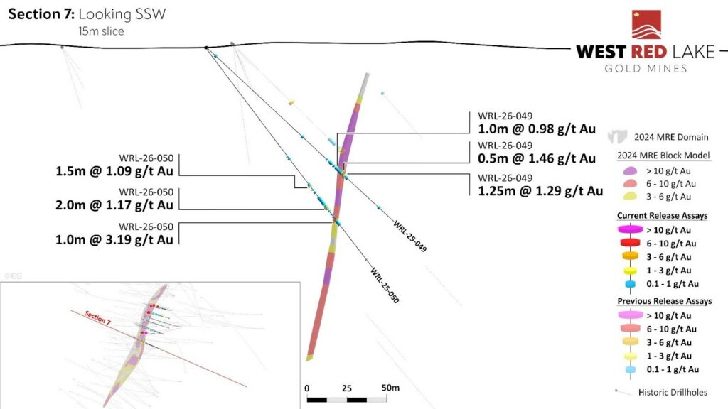 FIGURE 12: Fork drill section showing assay highlights for Holes WRL-25-049 and -050.